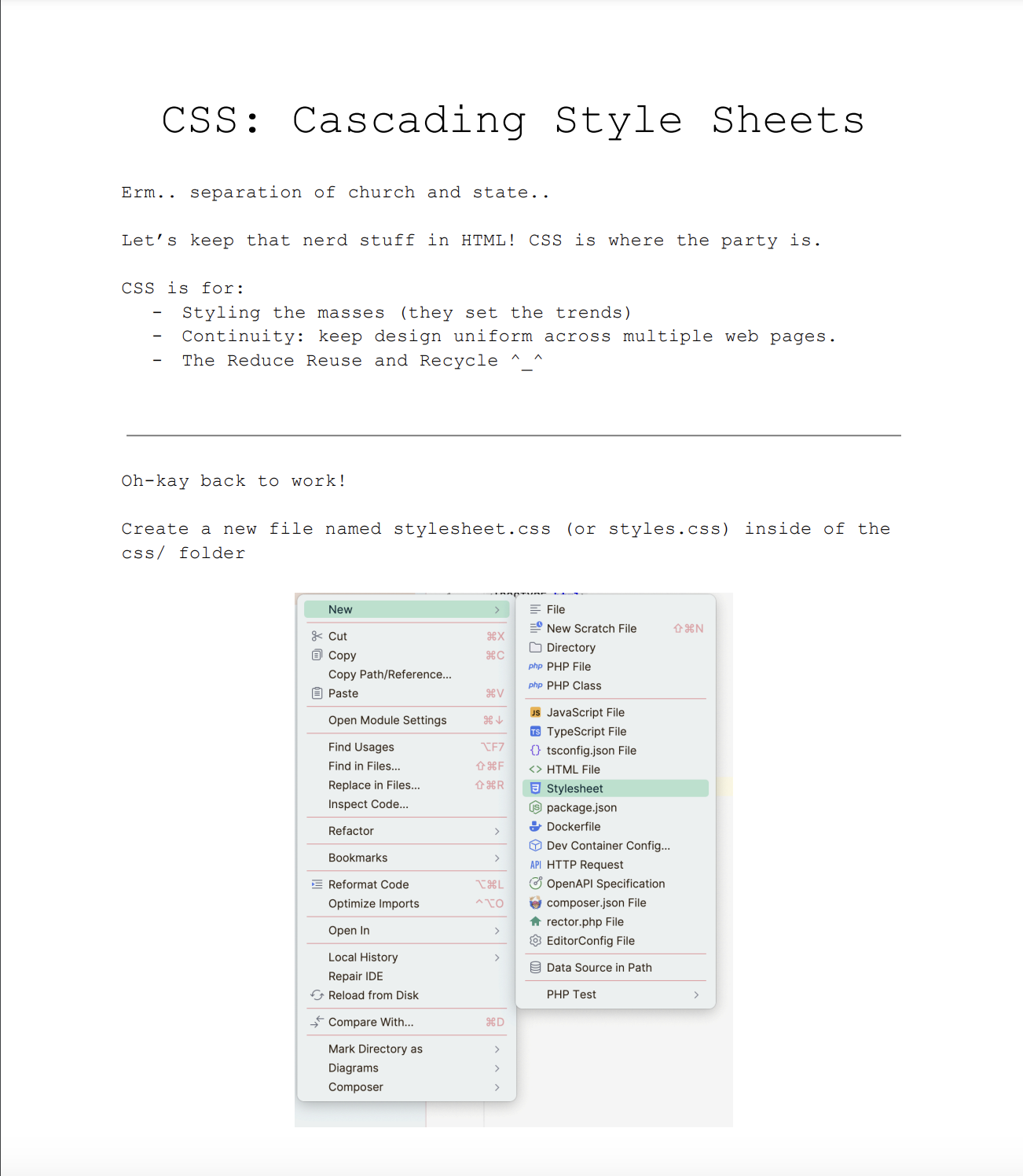 Brief demo of how to start creating a simple website.